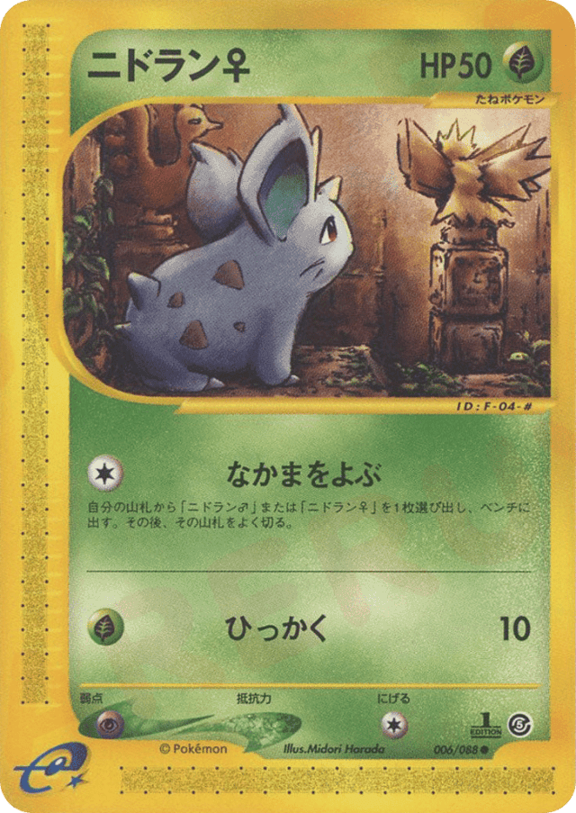 Search your deck for a Basic Pokémon card named Nidoran ♀ or Nidoran ♂ and put it onto your Bench. Shuffle your deck afterward. (You can't use this attack if your Bench is full.)