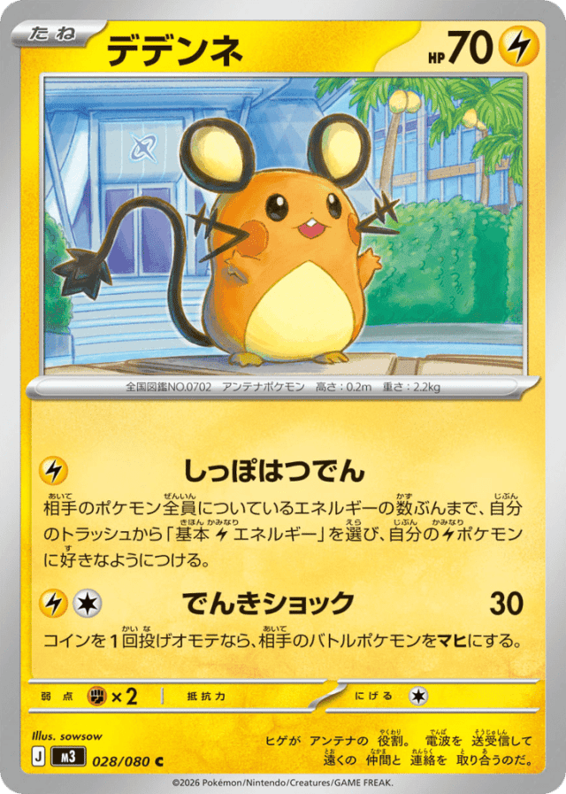 Thunder Shock30Cost: 2コインを1回投げオモテなら、相手のバトルポケモンをマヒにする。