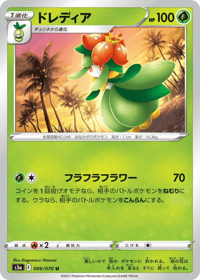 美しいので 他の ポケモンに 好かれる。 頭の花は 手入れを 怠ると すぐに 腐って 枯れる。