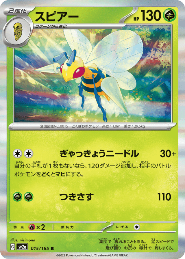Adversarial Needle30+Cost: 2自分の手札が1枚もないなら、120ダメージ追加し、相手のバトルポケモンをどくとマヒにする。