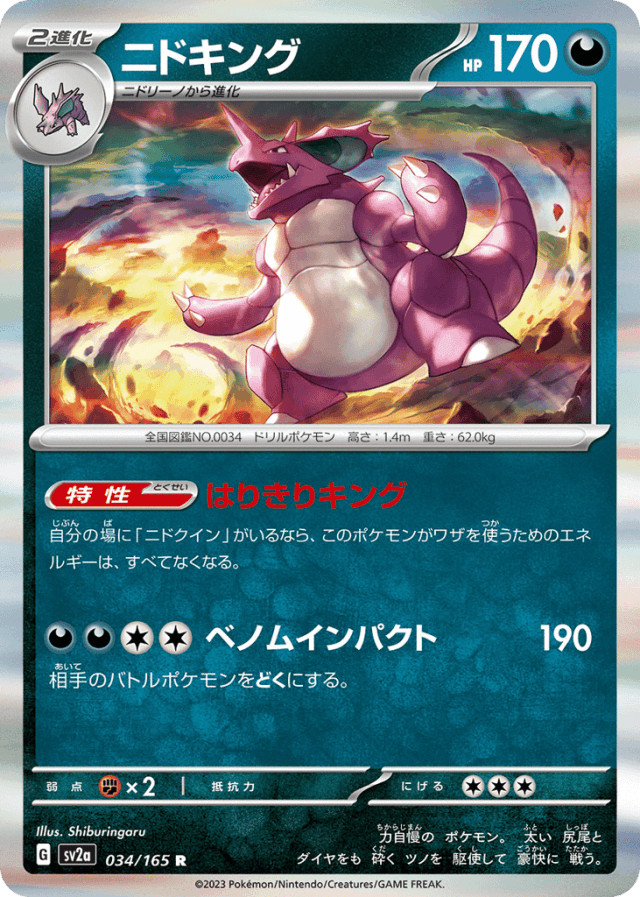 Hustle King自分の場に「ニドクイン」がいるなら、このポケモンがワザを使うためのエネルギーは、すべてなくなる。