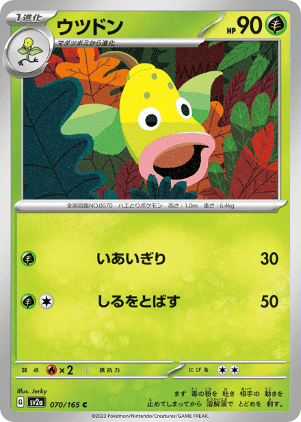 ポケモンカード151 (Pokémon Card 151) is a Japanese expansion in the Scarlet & Violet series for the Pokémon Trading Card Game, released on 2023-06-16. The set is listed with a total of 210 cards and a printed total of 165 and is not an online-only release. Collectors can expect a standard mix of Pokémon, Trainer/supporter, and Energy cards presented in a range of rarities and art treatments common to Pokémon TCG expansions, including holo and full-art variants. The release sits within the Scarlet & Violet era and generally features the promotional and higher-rarity chase cards that appeal to set collectors and completest collectors alike.