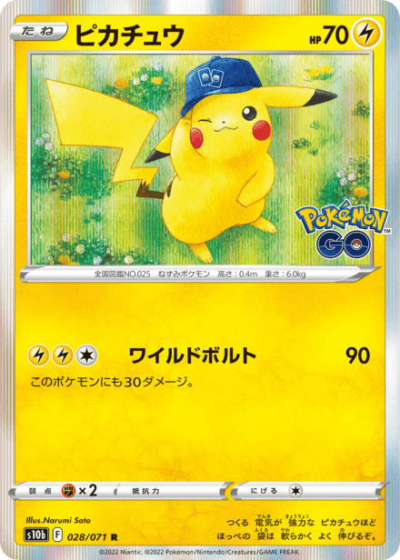 Pokémon GO is a Japanese Sword & Shield expansion (code S10b) released on June 17, 2022. The set is listed as having 101 cards total with a printed total of 71 and is not an online-only release. Collectors will find standard Pokémon TCG contents—Pokémon, Trainer, and Energy cards—presented in Japanese with artwork and themes tied to the Pokémon GO mobile game and featuring the rarities and print variants typical of Sword & Shield-era releases.
