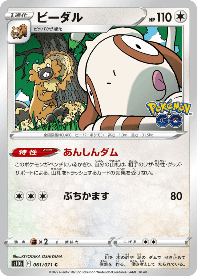 Reassuring Damこのポケモンがベンチにいるかぎり、自分の山札は、相手のワザ・特性・グッズ・サポートによる、山札をトラッシュするカードの効果を受けない。