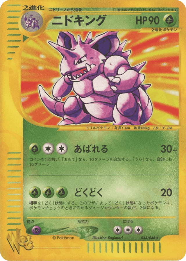Flip a coin. If heads, this attack does 30 damage plus 10 more damage; if tails, this attack does 30 damage and Nidoking does 10 damage to itself.