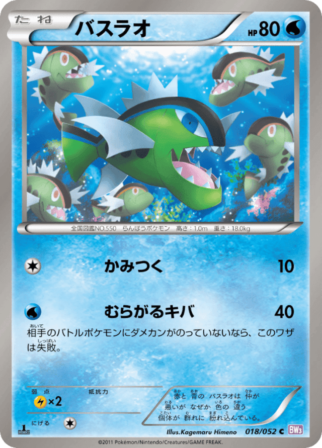 赤と 青の バスラオは 仲が 悪いが なぜか 色の 違う 個体が 群れに 紛れ込んでいる。