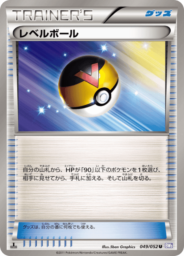 自分の山札から、HPが「90」以下のポケモンを1枚選び、相手に見せてから、手札に加える。そして山札を切る。 グッズは、自分の番に何枚でも使える。