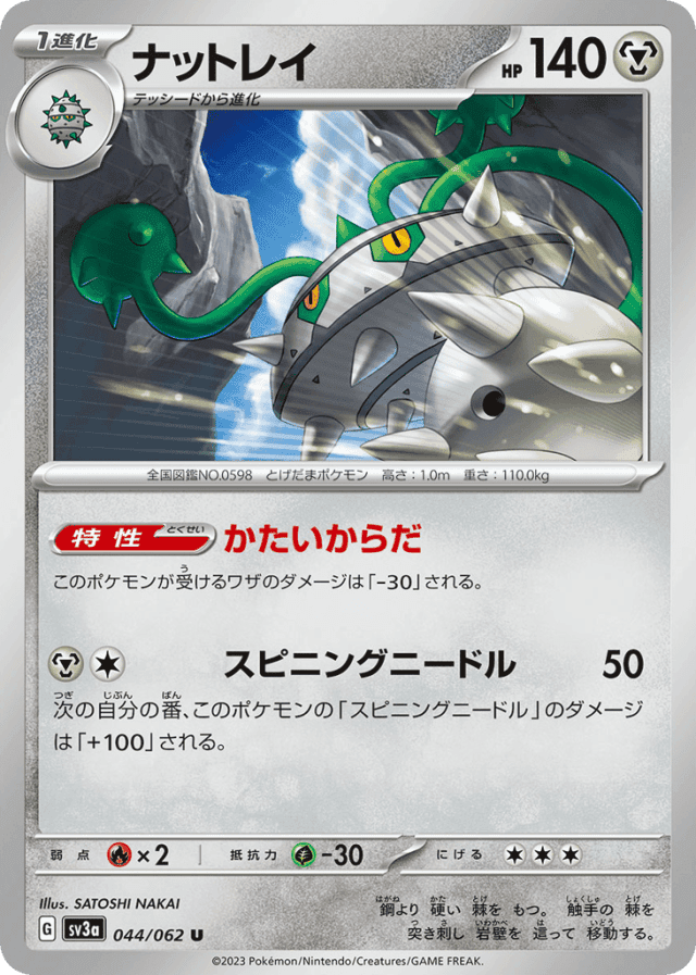 Spinning Needle50Cost: 2次の自分の番、このポケモンの「スピニングニードル」のダメージは「+100」される。