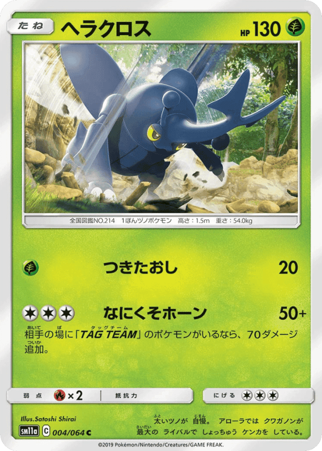 Riled Horn50+Cost: 3相手の場に「TAG TEAM」のポケモンがいるなら、70ダメージ追加。