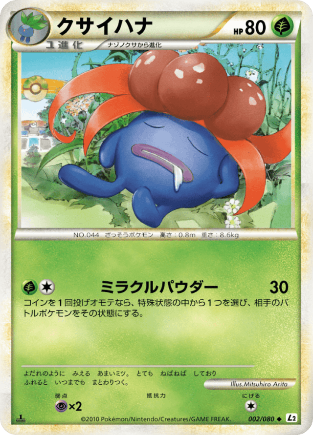 Miracle Powder30Cost: 2コインを1回投げオモテなら、特殊状態の中から1つを選び、相手のバトルポケモンをその状態にする。