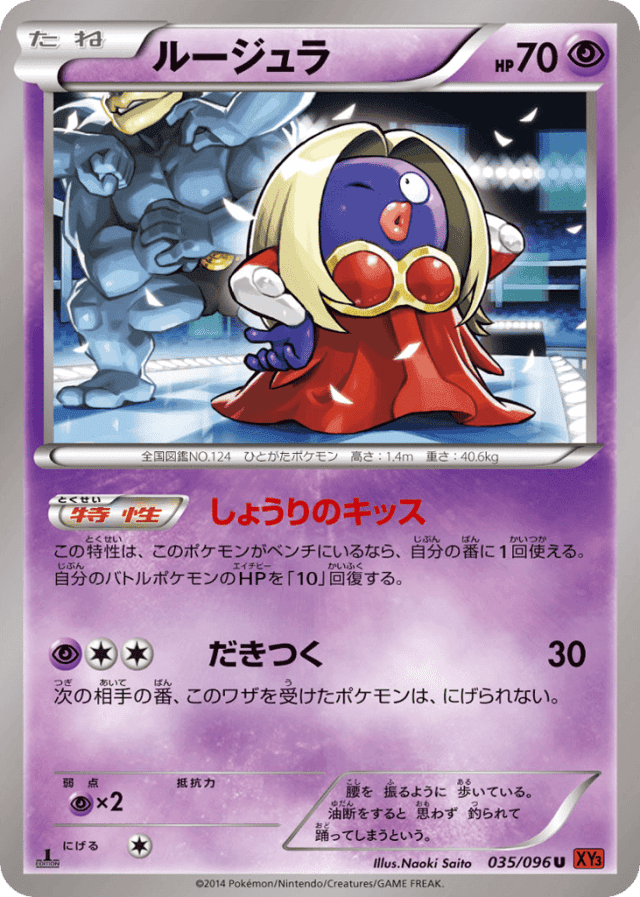 Victory Kissこの特性は、このポケモンがベンチにいるなら、自分の番に1回使える。自分のバトルポケモンのHPを「10」回復する。