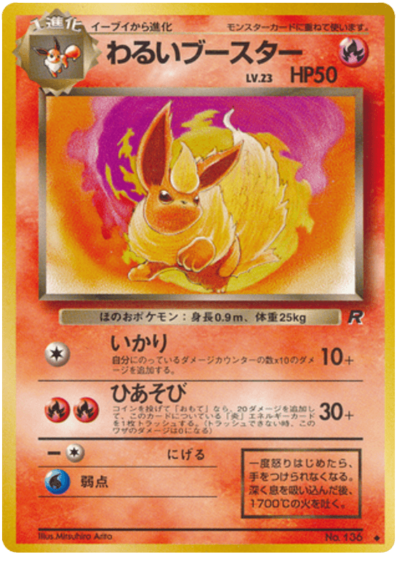Use this attack only if there are any Fire Energy cards attached to Dark Flareon. Flip a coin. If heads, discard 1 of those Energy cards and this attack does 30 damage plus 20 more damage; if tails, this attack does 30 damage.