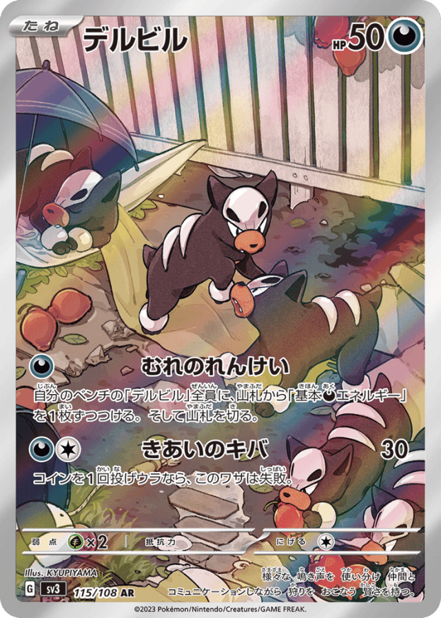 Coordinated PackCost: 1自分のベンチの「デルビル」全員に、山札から「基本Darknessエネルギー」を1枚ずつつける。そして山札を切る。