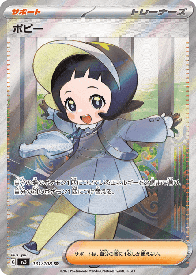 自分の場のポケモン1匹についているエネルギーを2個まで選び、自分の別のポケモン1匹につけ替える。 サポートは、自分の番に1枚しか使えない。