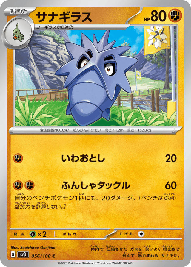 Blasting Tackle60Cost: 2自分のベンチポケモン1匹にも、20ダメージ。[ベンチは弱点・抵抗力を計算しない。]