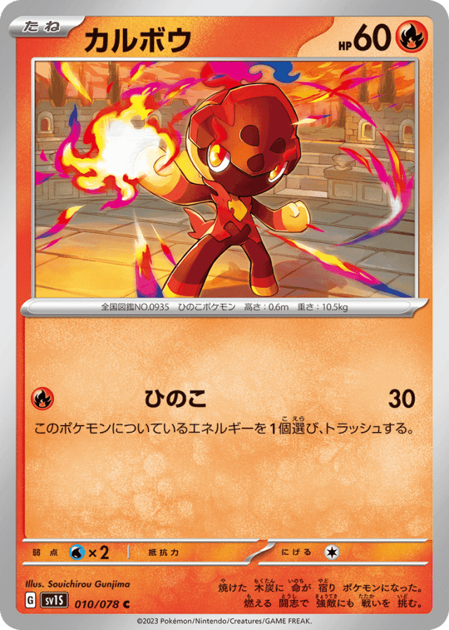 焼けた 木炭に 命が 宿り ポケモンになった。 燃える 闘志で 強敵にも 戦いを 挑む。