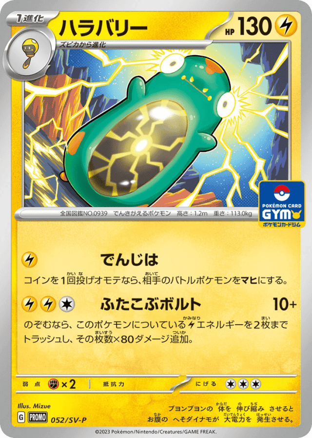 Two Bump Bolt10+Cost: 3のぞむなら、このポケモンについているLightningエネルギーを2枚までトラッシュし、その枚数×80ダメージ追加。