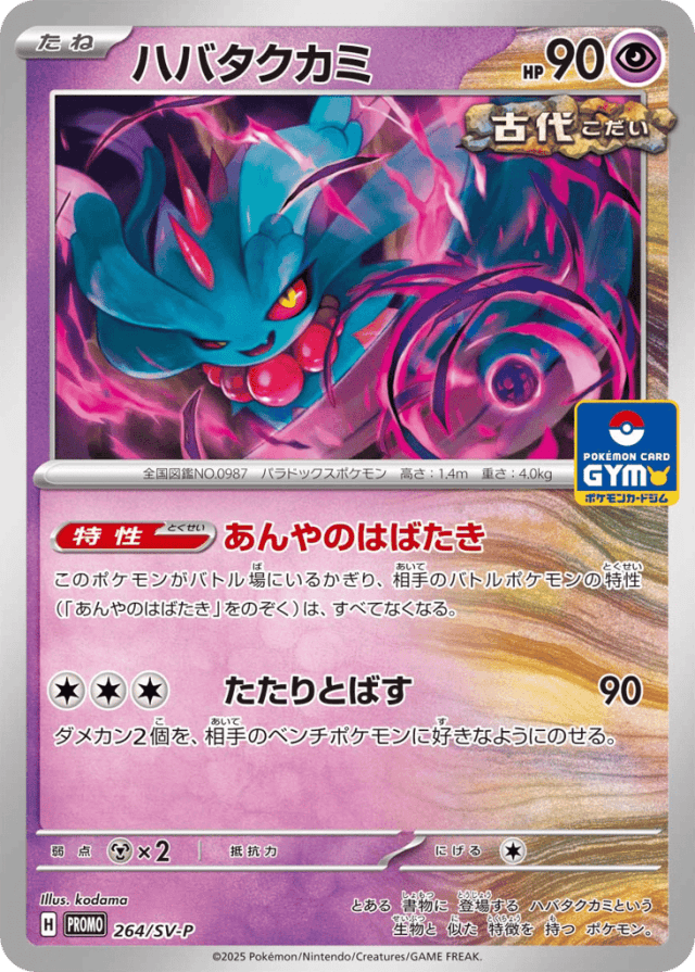とある 書物に 登場する ハバタクカミという 生物と 似た 特徴を 持つ ポケモン。