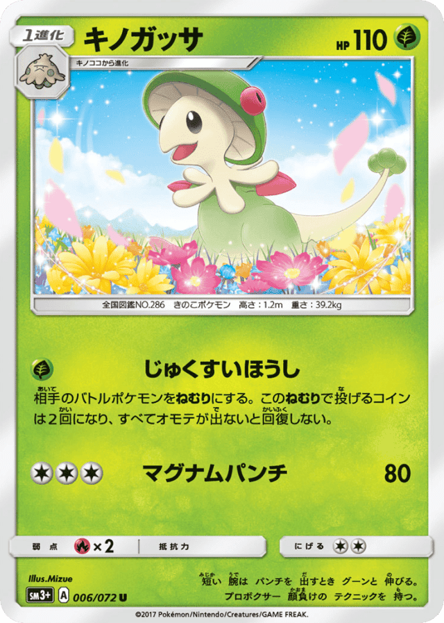 Hibernation SporeCost: 1相手のバトルポケモンをねむりにする。このねむりで投げるコインは2回になり、すべてオモテが出ないと回復しない。