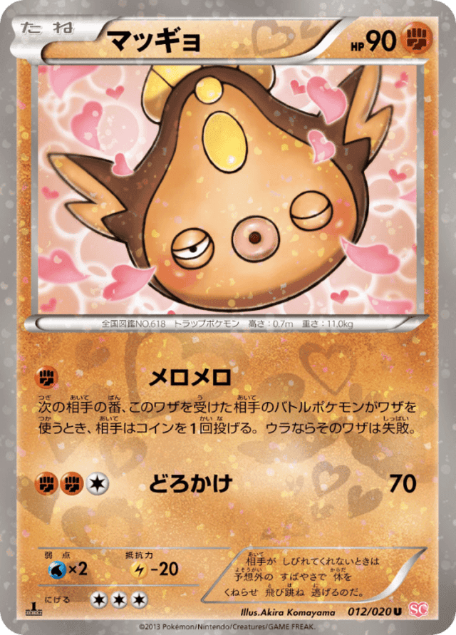 次の相手の番、このワザを受けた相手のバトルポケモンがワザを使うとき、相手はコインを1回投げる。ウラならそのワザは失敗。