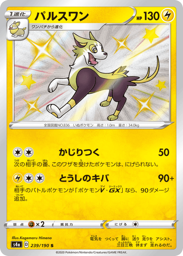 Fighting Fangs90+Cost: 3相手のバトルポケモンが「ポケモンV・GX」なら、90ダメージ追加。