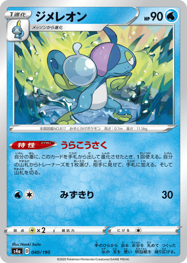 自分の番に、このカードを手札から出して進化させたとき、1回使える。自分の山札からトレーナーズを1枚選び、相手に見せて、手札に加える。そして山札を切る。