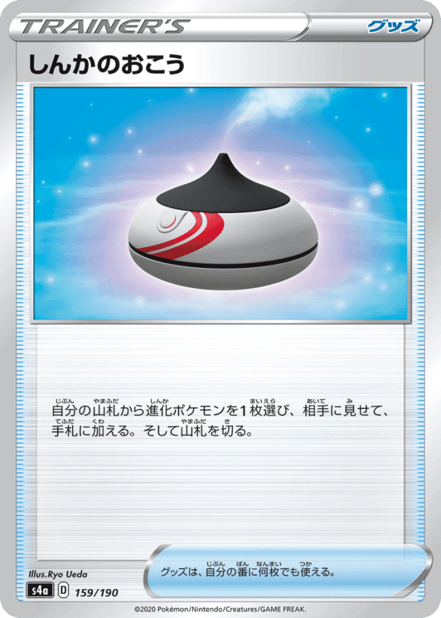 自分の山札から進化ポケモンを1枚選び、相手に見せて、手札に加える。そして山札を切る。 グッズは、自分の番に何枚でも使える。