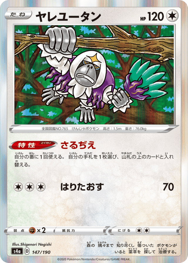 Primate Wisdom自分の番に1回使える。自分の手札を1枚選び、山札の上のカードと入れ替える。