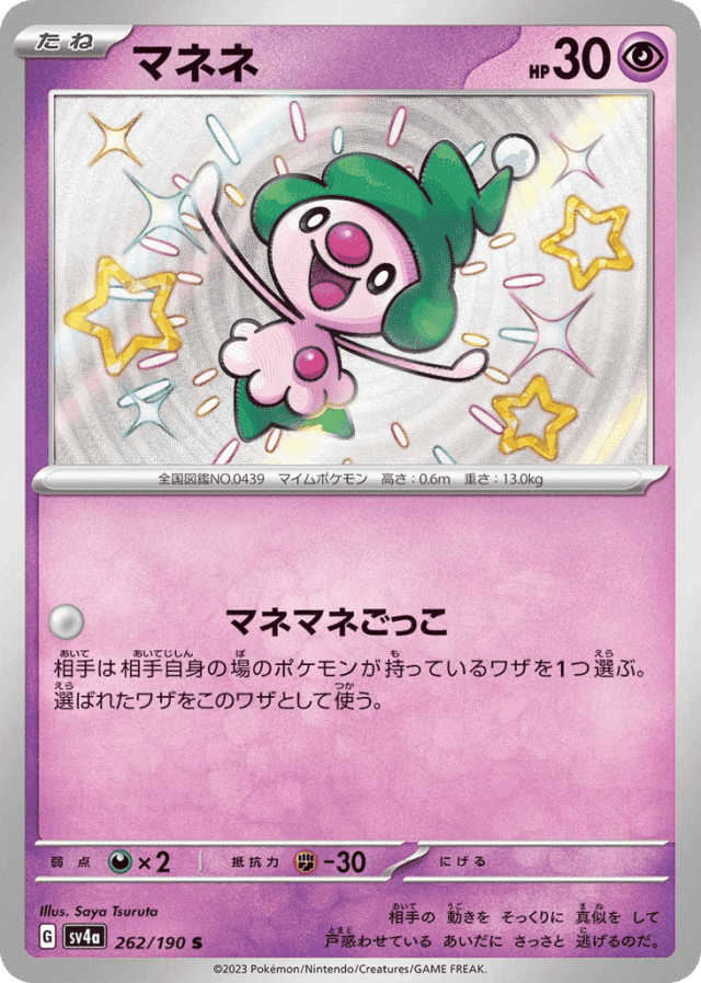Mimicking PretendCost: 1相手は相手自身の場のポケモンが持っているワザを1つ選ぶ。選ばれたワザをこのワザとして使う。