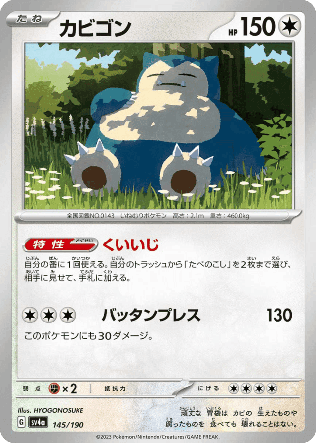 Voraciousness自分の番に1回使える。自分のトラッシュから「たべのこし」を2枚まで選び、相手に見せて、手札に加える。
