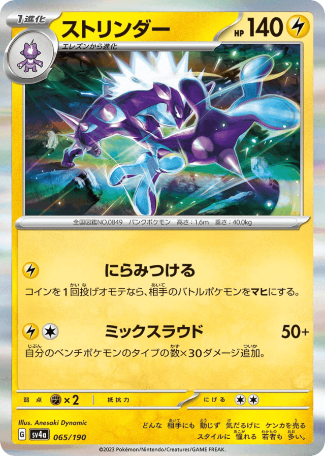 Loud Mix50+Cost: 2自分のベンチポケモンのタイプの数×30ダメージ追加。