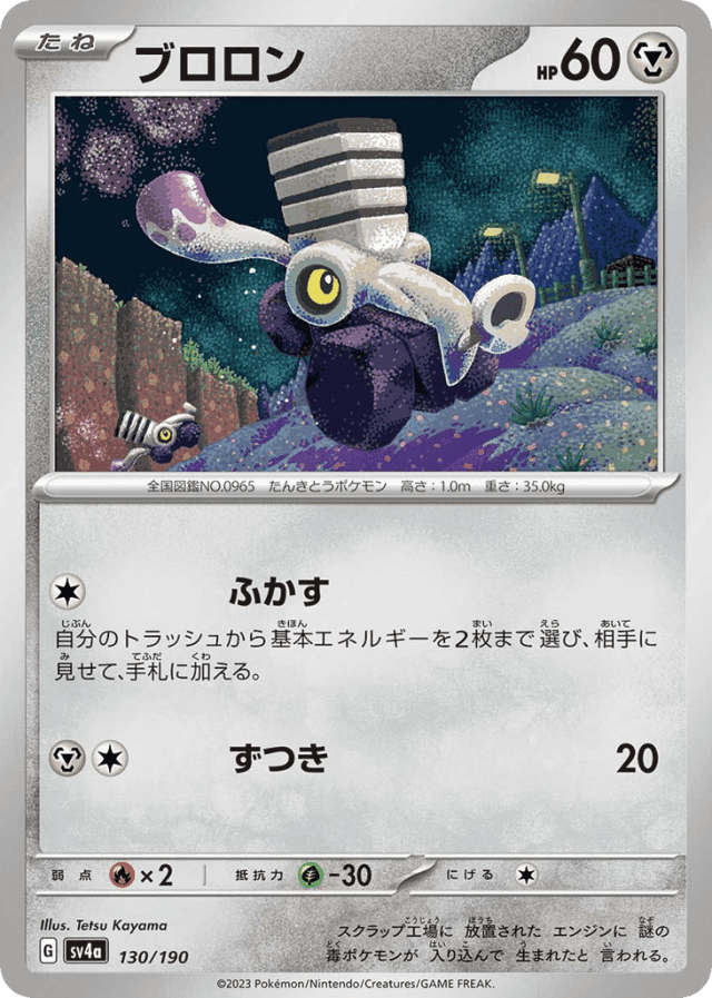 スクラップ工場に 放置された エンジンに 謎の 毒ポケモンが 入り込んで 生まれたと 言われる。