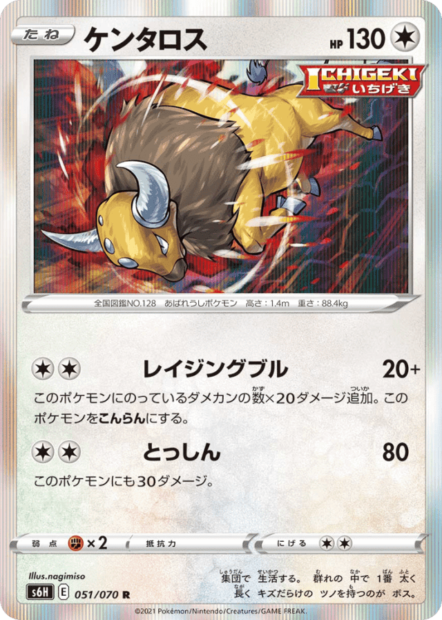 Raging Bull20+Cost: 2このポケモンにのっているダメカンの数×20ダメージ追加。このポケモンをこんらんにする。