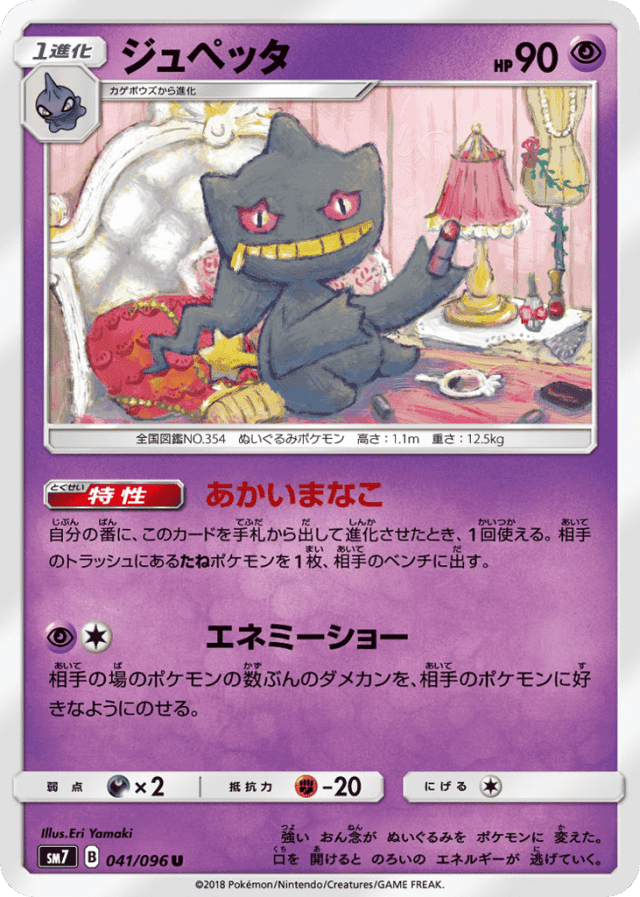 自分の番に、このカードを手札から出して進化させたとき、1回使える。相手のトラッシュにあるたねポケモンを1枚、相手のベンチに出す。