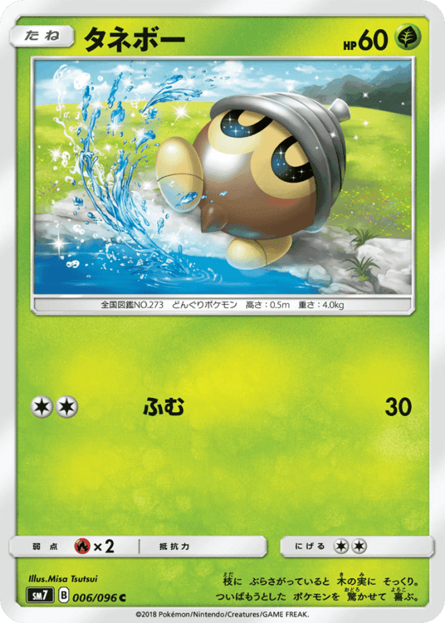 枝に ぶらさがっていると 木の実に そっくり。 ついばもうとした ポケモンを 驚かせて 喜ぶ。