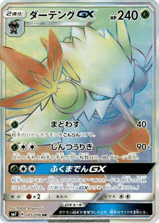 Den of Iniquity-GXCost: 3相手のポケモン1匹と、ついているすべてのカードを、相手の山札にもどして切る。[対戦中、自分はGXワザを1回しか使えない。]