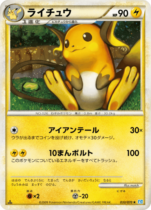 Thunderbolt100Cost: 2このポケモンについているエネルギーをすべてトラッシュ。
