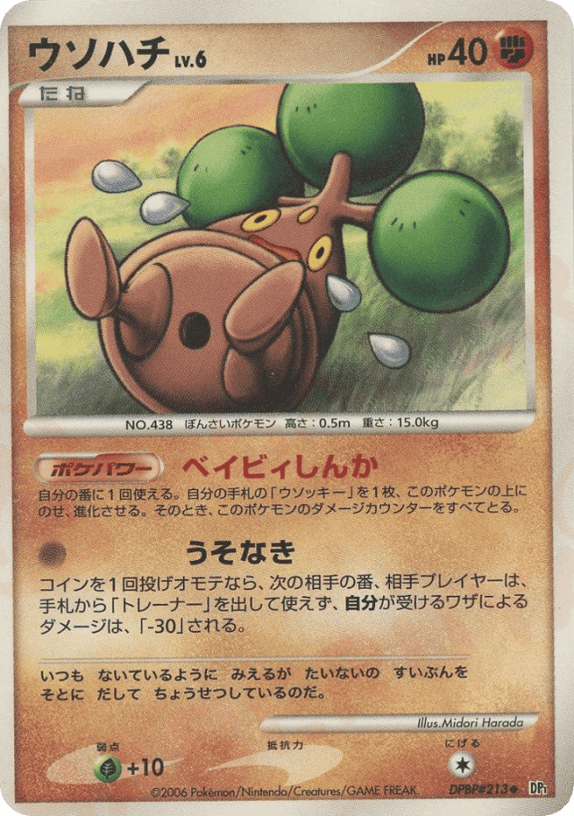 Once during your turn (before your attack), you may put Sudowoodo from your hand onto Bonsly (this counts as evolving Bonsly) and remove all damage counters from Bonsly.