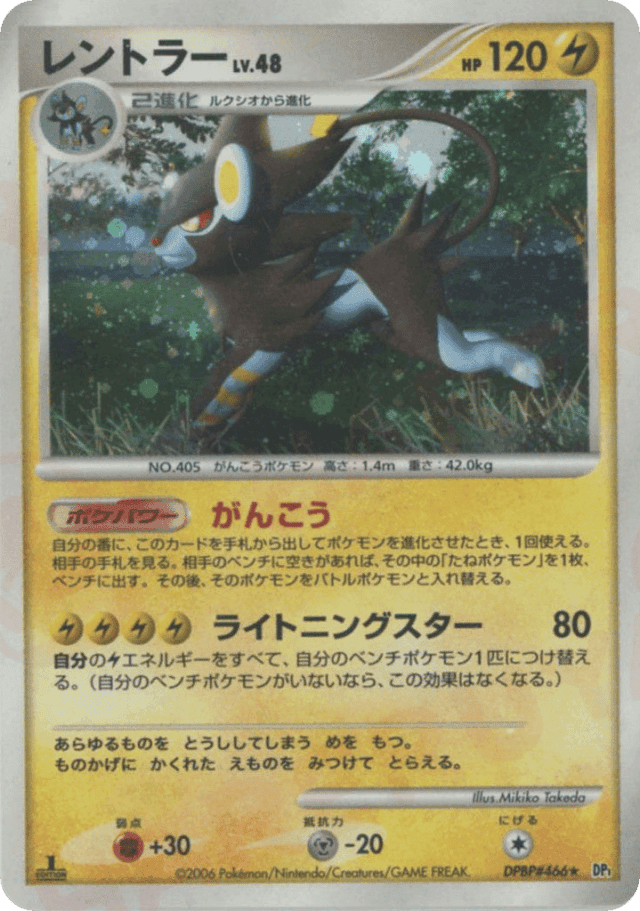 Lightning Star80Cost: 4自分のElectricエネルギーをすべて、自分のベンチポケモン1匹につけ替える。(自分のベンチポケモンがいないなら、この効果はなくなる。)