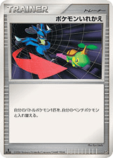 自分のバトルポケモン1匹を、自分のベンチポケモンと入れ替える。 グッズは、自分の番に何枚でも使える。