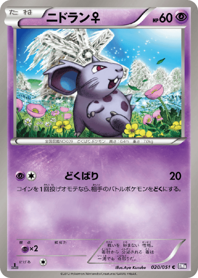 Poison Sting20Cost: 2コインを1回投げオモテなら、相手のバトルポケモンをどくにする。