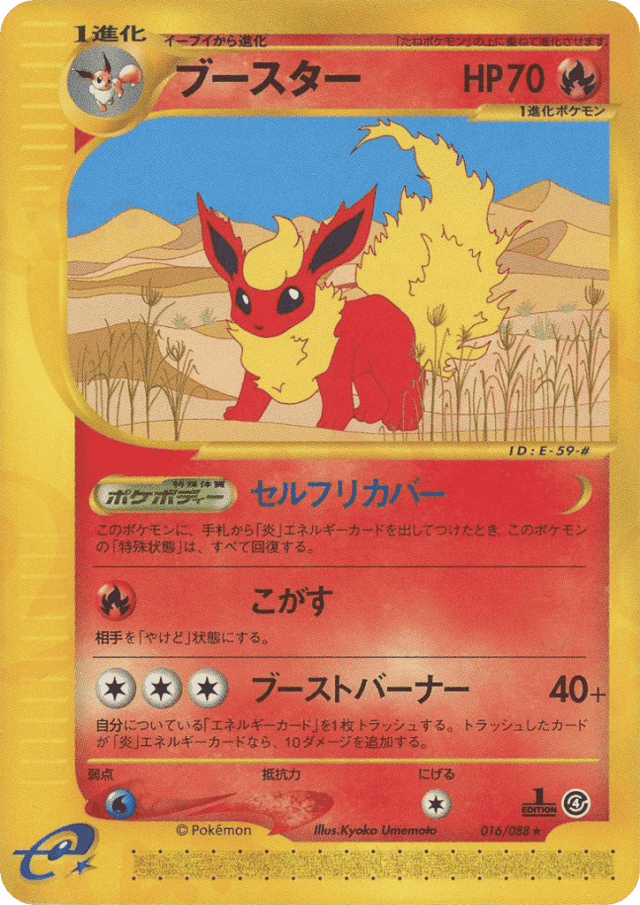 Discard an Energy card attached to Flareon in order to use this attack. If the discarded card is a Fire Energy card, this attack does 40 damage plus 10 more damage.