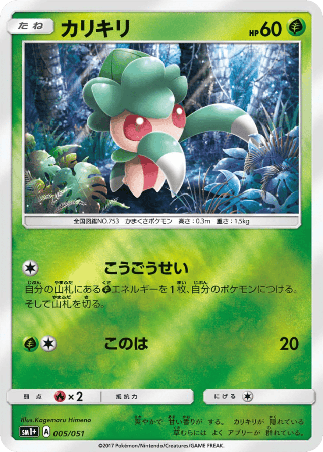 自分の山札にあるGrassエネルギーを1枚、自分のポケモンにつける。そして山札を切る。