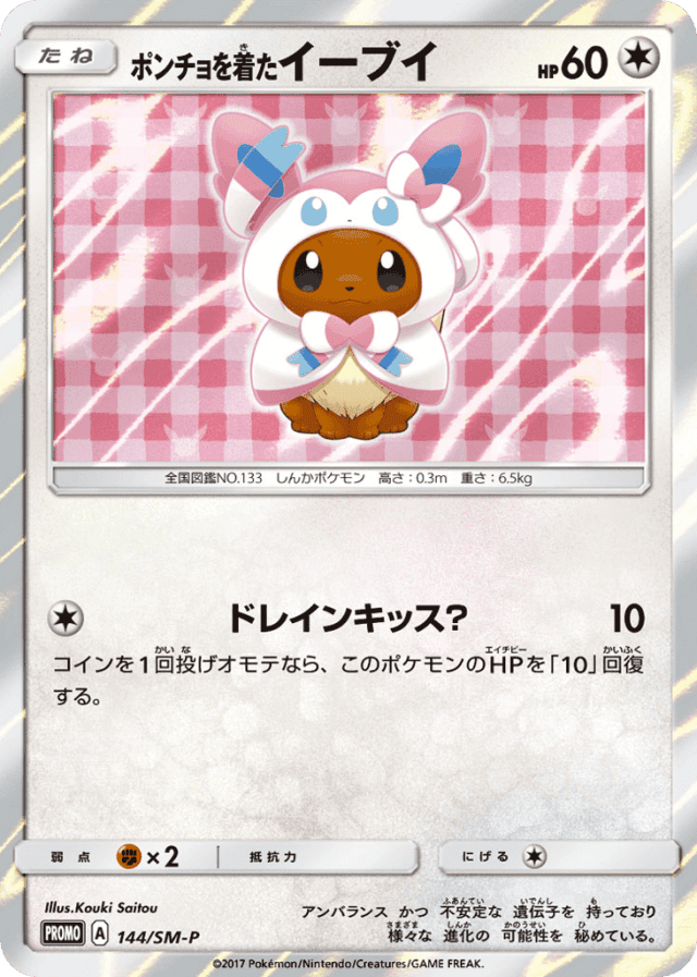 Draining Kiss?10Cost: 1コインを1回投げオモテなら、このポケモンのHPを「10」回復する。