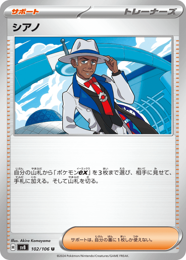自分の山札から「ポケモンex」を3枚まで選び、相手に見せて、手札に加える。そして山札を切る。 サポートは、自分の番に1枚しか使えない。