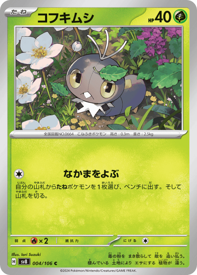 自分の山札からたねポケモンを1枚選び、ベンチに出す。そして山札を切る。