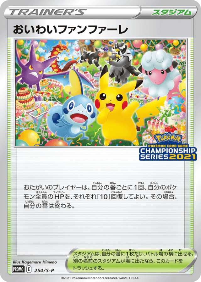 おたがいのプレイヤーは、自分の番ごとに1回、自分のポケモン全員のHPを、それぞれ「10」回復してよい。その場合、自分の番は終わる。 スタジアムは、自分の番に1枚だけ、バトル場の横に出せる。別の名前のスタジアムが場に出たなら、このカードをトラッシュする。