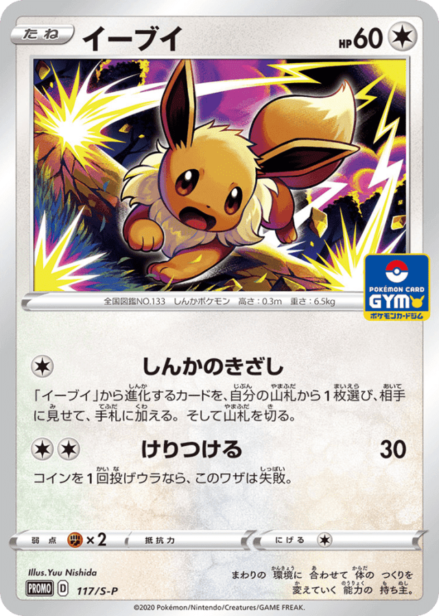 「イーブイ」から進化するカードを、自分の山札から1枚選び、相手に見せて、手札に加える。そして山札を切る。