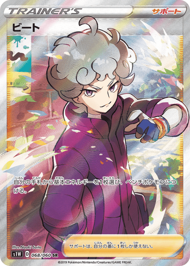 自分の手札から基本エネルギーを1枚選び、ベンチポケモンにつける。 サポートは、自分の番に1枚しか使えない。