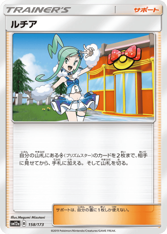 自分の山札にある<span class="pcg pcg-prismstar"></span>(プリズムスター)のカードを2枚まで、相手に見せてから、手札に加える。そして山札を切る。 サポートは、自分の番に1枚しか使えない。
